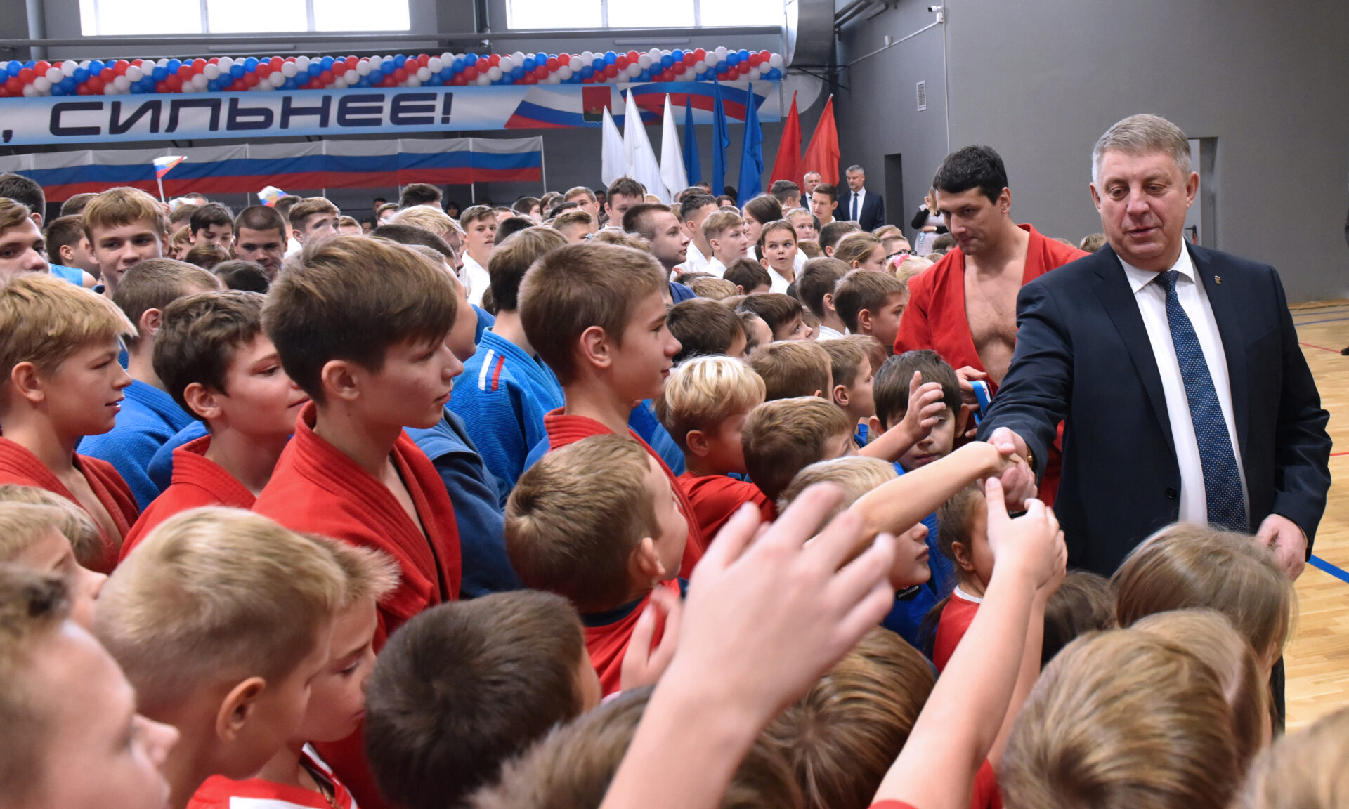 На открытии спортивного комплекса присутствовали Губернатор Брянской области Александр Богомаз, капитан сборной России по самбо, девятикратный чемпионом мира по самбо Артем Осипенко.