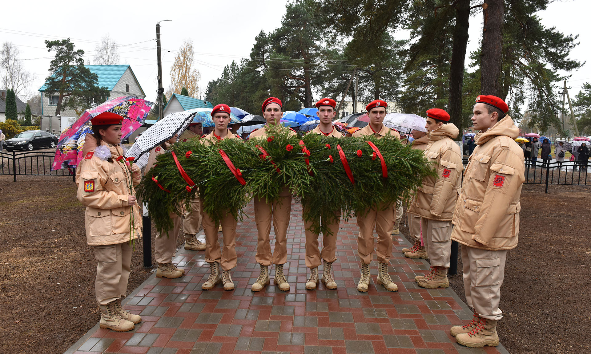 После почетные гости, юнармейцы, гости почтили память жителей Унечи, погибших от рук немецко-фашистских захватчиков в Великой Отечественной войне 1941—1945 гг., возложив цветы к отреставрированному памятнику.