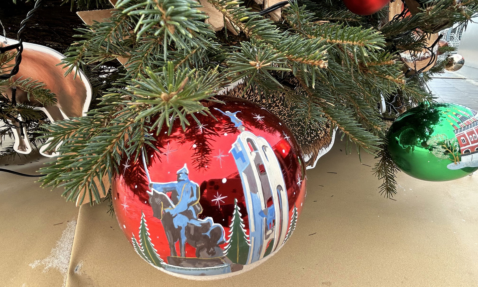 Елочные украшения, а их около сотни, в базовых цветах символов области дополнили декоративными элементами с изображениями животных Брянского леса. Их выполнили из разных природных материалов, свойственных для нашей территории: в керамике, в бересте, в лозе, в дереве и в технике сухого валяния.