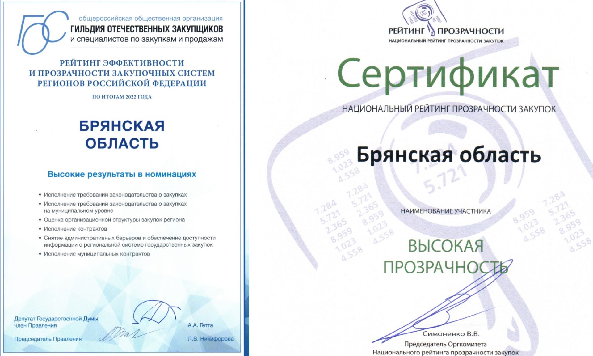 27 ноября 2023 года в Общественной палате Российской Федерации торжественно подведены итоги проекта «Национальный рейтинг прозрачности закупок 2023», по итогам которого Брянская область подтвердила высокие позиции и вошла в число лидирующих регионов с рейтингом «Высокая прозрачность».