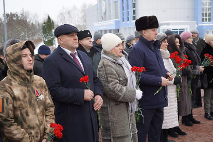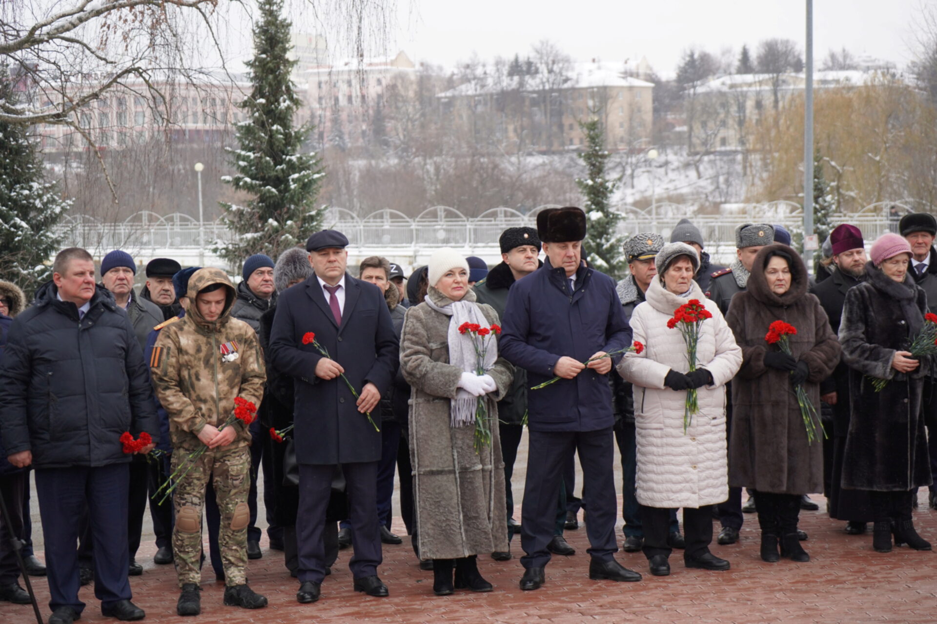 В церемонии возложения цветов к бюстам Героев Российской Федерации Олега Ермакова, Сергея Василева, Алексея Рассказы, Александра Гердта и к бюсту удостоенного ордена Мужества Александра Трубенка приняли участие Губернатор Александр Богомаз, мама Героя России Сергея Василёва Галина Георгиевна Василёва, мама Героя России Олега Ермакова Лидия Филипповна Ермакова, мама кавалера ордена Кутузова Федора Журавлева Людмила Федоровна Журавлева, мама награжденного Орденом Мужества Дмитрия Седнева Марина Николаевна Седнева, мама награжденного Орденом Мужества Никиты Самойлова Наталья Анатольевна Самойлова.
