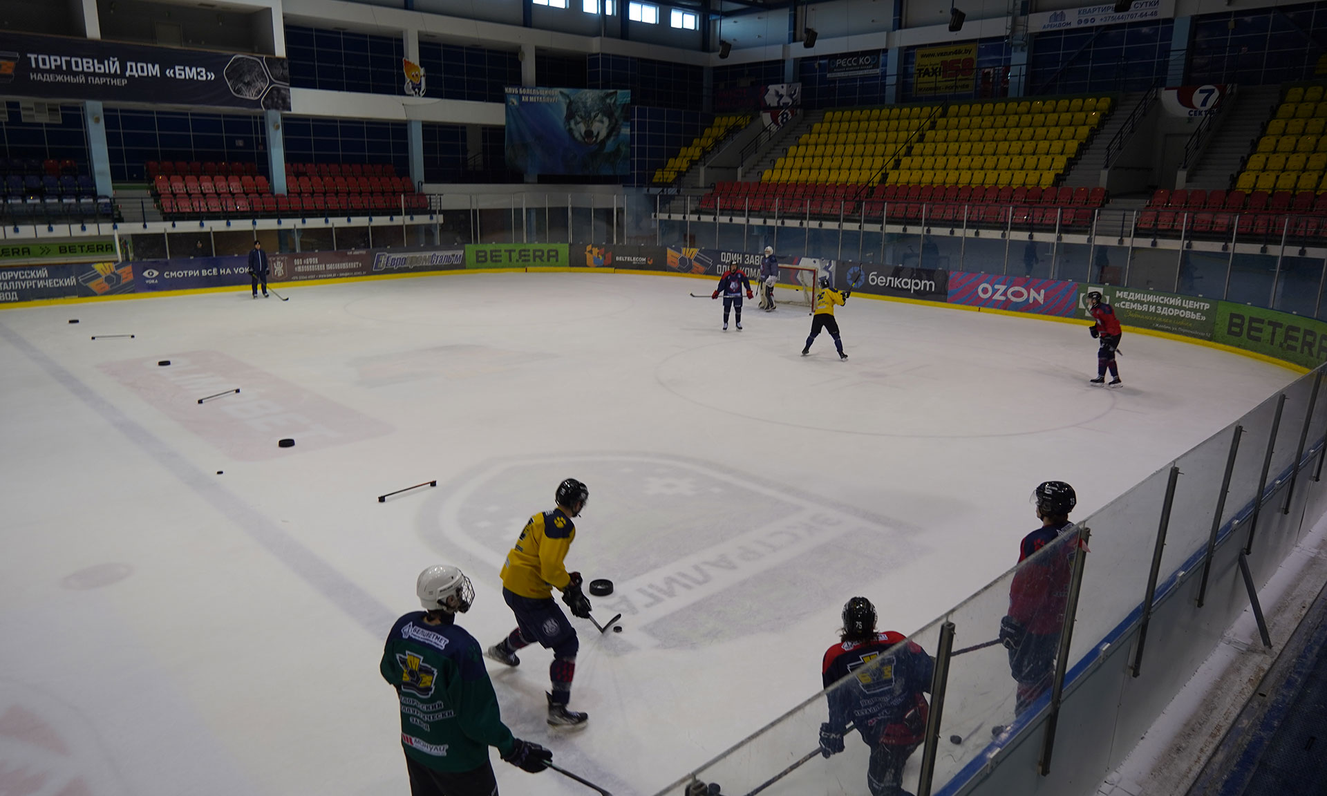 Вчера здесь тренировались и брянские юные хоккеисты, которые сегодня встретились на льду в Светлогорске с командой гомельчан.