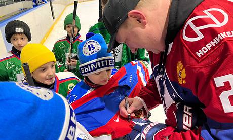 Хоккейный праздник завершился общим фотографированием и автограф-сессией прославленных спортсменов Сергея Макарова и Бориса Миронова.