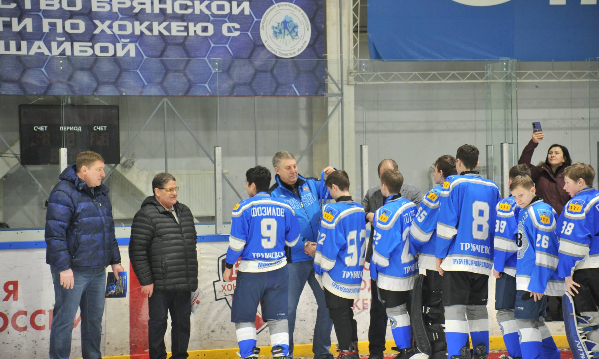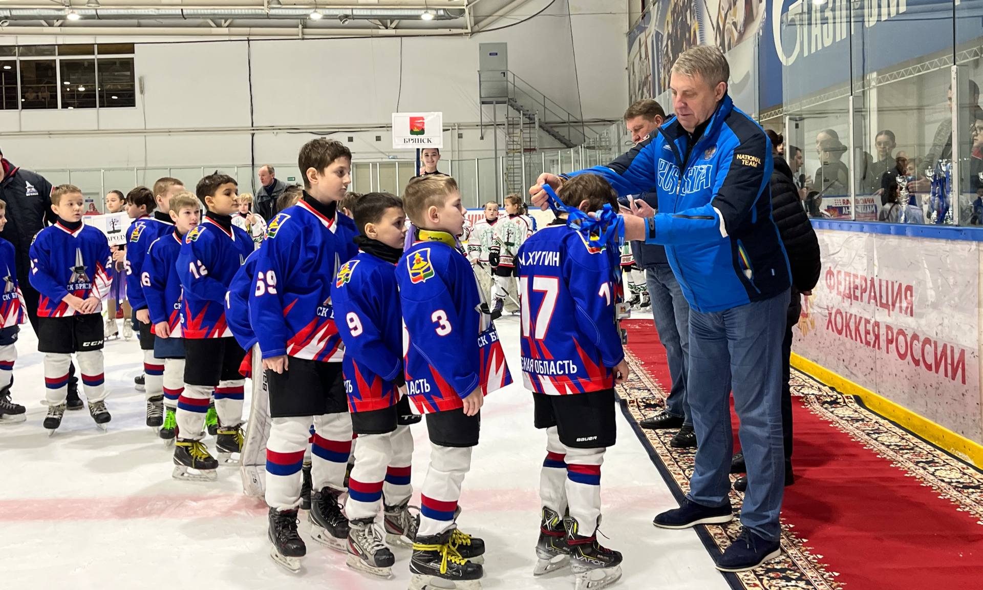 После окончания соревнований состоялось торжественное награждение победителей и призеров Первенства Брянской области по хоккею среди юношей всех возрастов. Юным спортсменам были вручены кубки, грамоты имедали. Итоги чемпионата следующие: