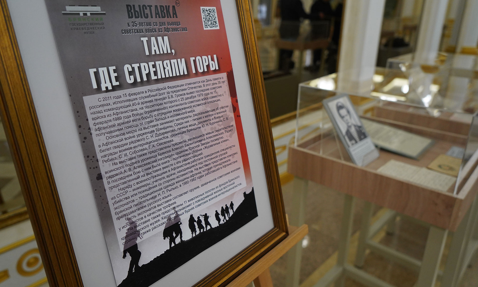 Перед началом торжественной части гости ознакомились с представленной в фойе посвященной афганской войне и ее героям экспозицией, вобравшей в себя образцы вооружения, личные вещи, документы бойцов, а также художественные полотна, повествующие о событиях тех лет. Выставка продолжит свою работу в Брянском областном краеведческом музее.