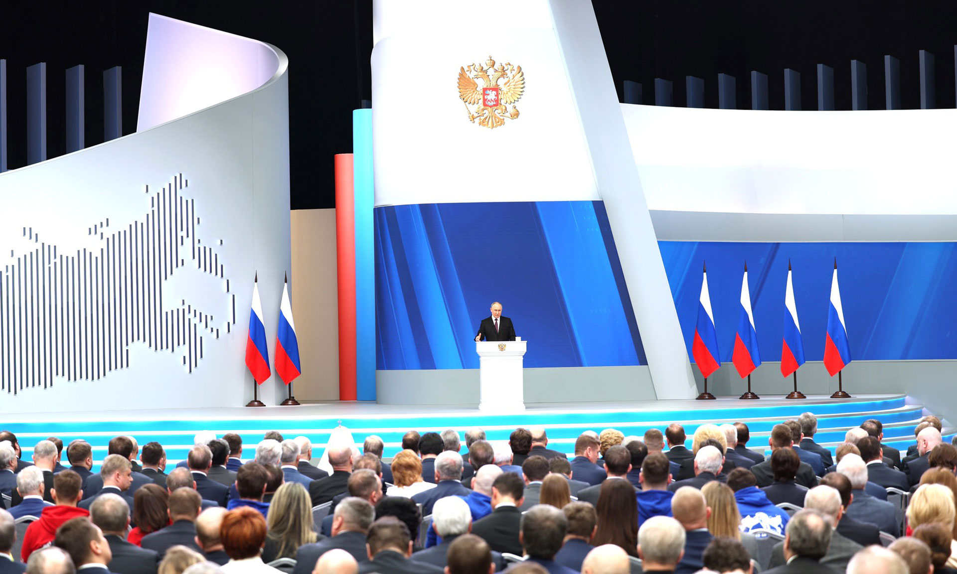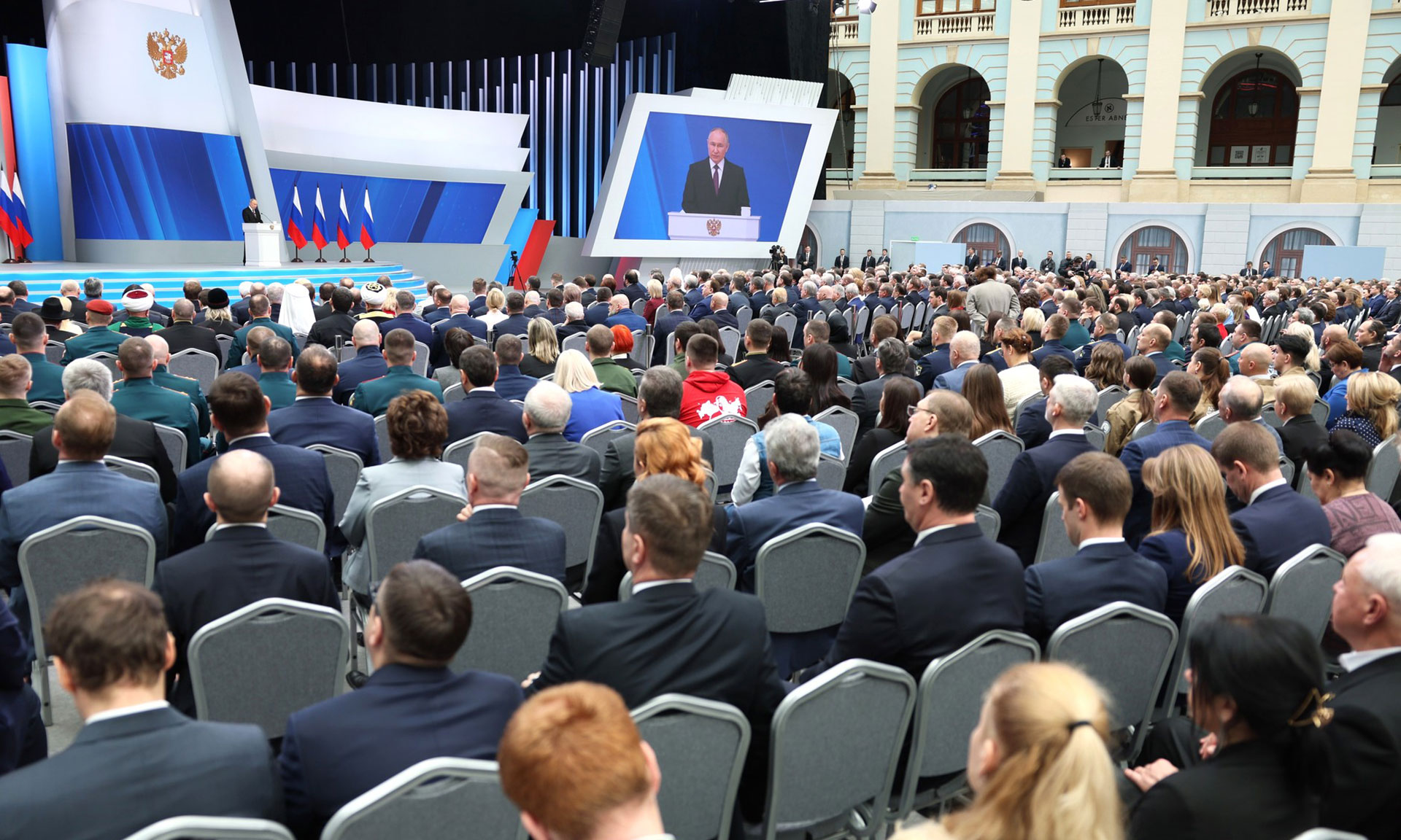 29 февраля Президент России Владимир Путин обратился с Посланием к Федеральному Собранию. Церемония оглашения прошла в Москве, в Гостином дворе. В числе участников мероприятия участники Специальной военной операции, руководители всех уровней государственной власти, представители Совета Федерации и Государственной Думы Федерального Собрания Российской Федерации, руководители регионов России, представители общественных организаций.