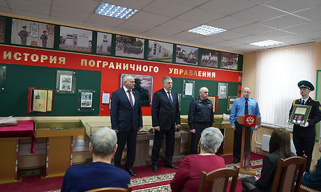 В церемонии награждения и встрече с родными боевого офицера приняли участие Губернатор Александр Богомаз, председатель Брянской областной Думы Валентин Суббот, начальник пограничного управления ФСБ России по Брянской области Амир Амиров.