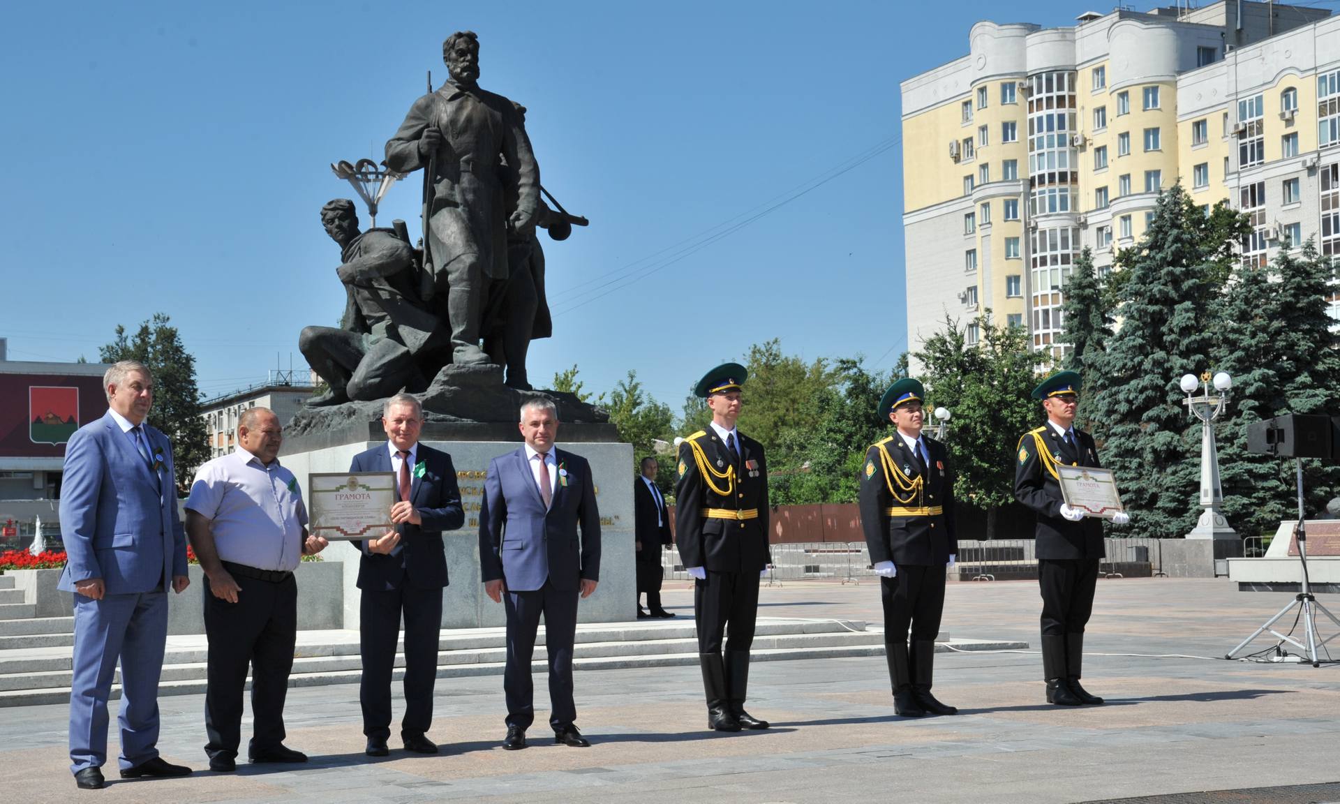 29 июня праздничная программа Дня партизан и подпольщиков началась с торжественного митинга и церемонии вручения грамот о присвоении почётных званий «Город партизанской славы», «Село партизанской славы» и «Населенный пункт партизанской славы».