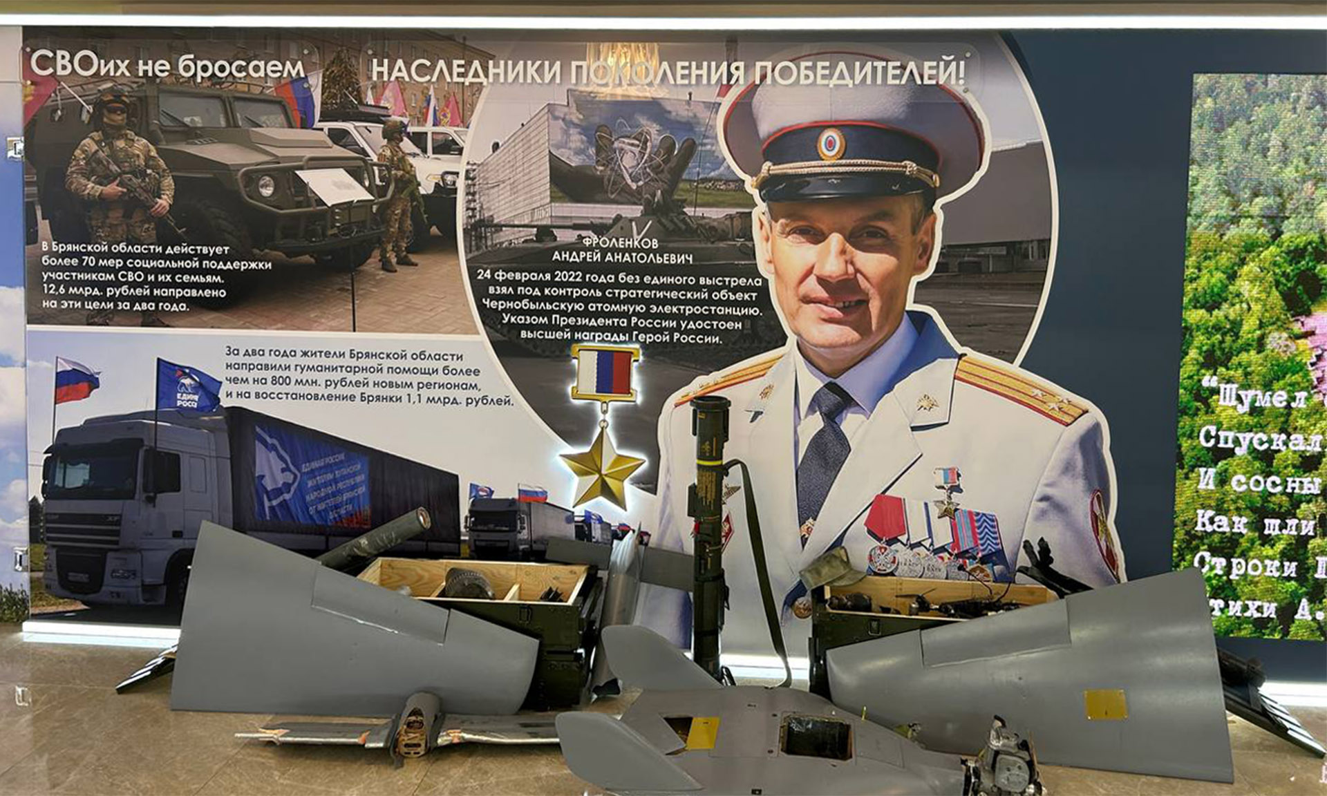 В здании Верхней палаты Парламента развернулась и большая выставка, посвященная истории, современности и перспективам развития Брянской области. В экспозиции также размещены стенды о наших знаменитых земляках.