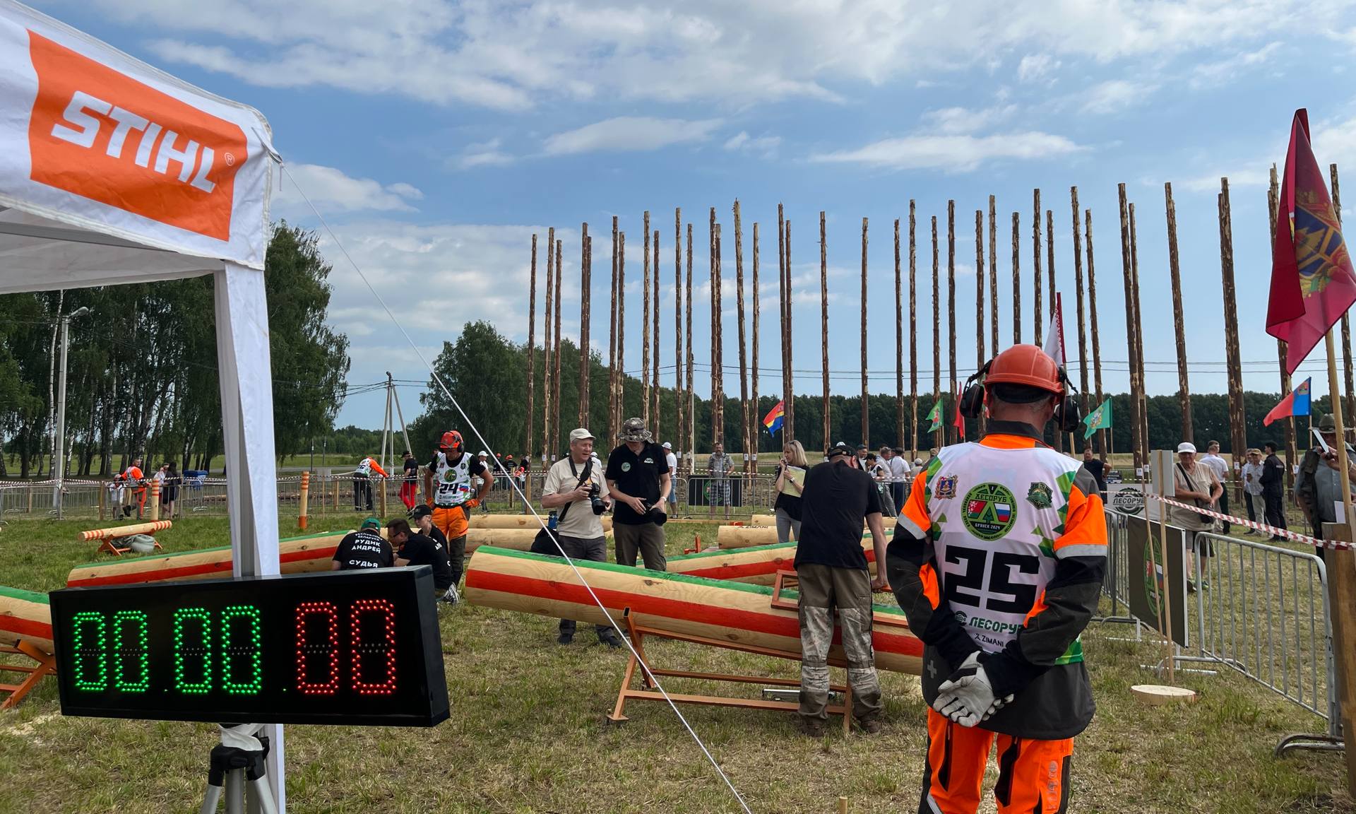 В этом году в рамках «Дня Брянского поля» состоялся международный конкурс лесорубов «Кубок чемпионов Союзного государства среди вальщиков леса». Участники состязались по 6 дисциплинам (валка дерева, замена цепи, обрезка сучьев, точная раскряжевка, раскряжевка комбинированным резом, командная эстафета).