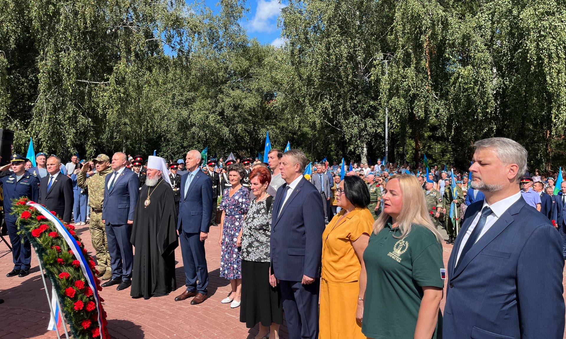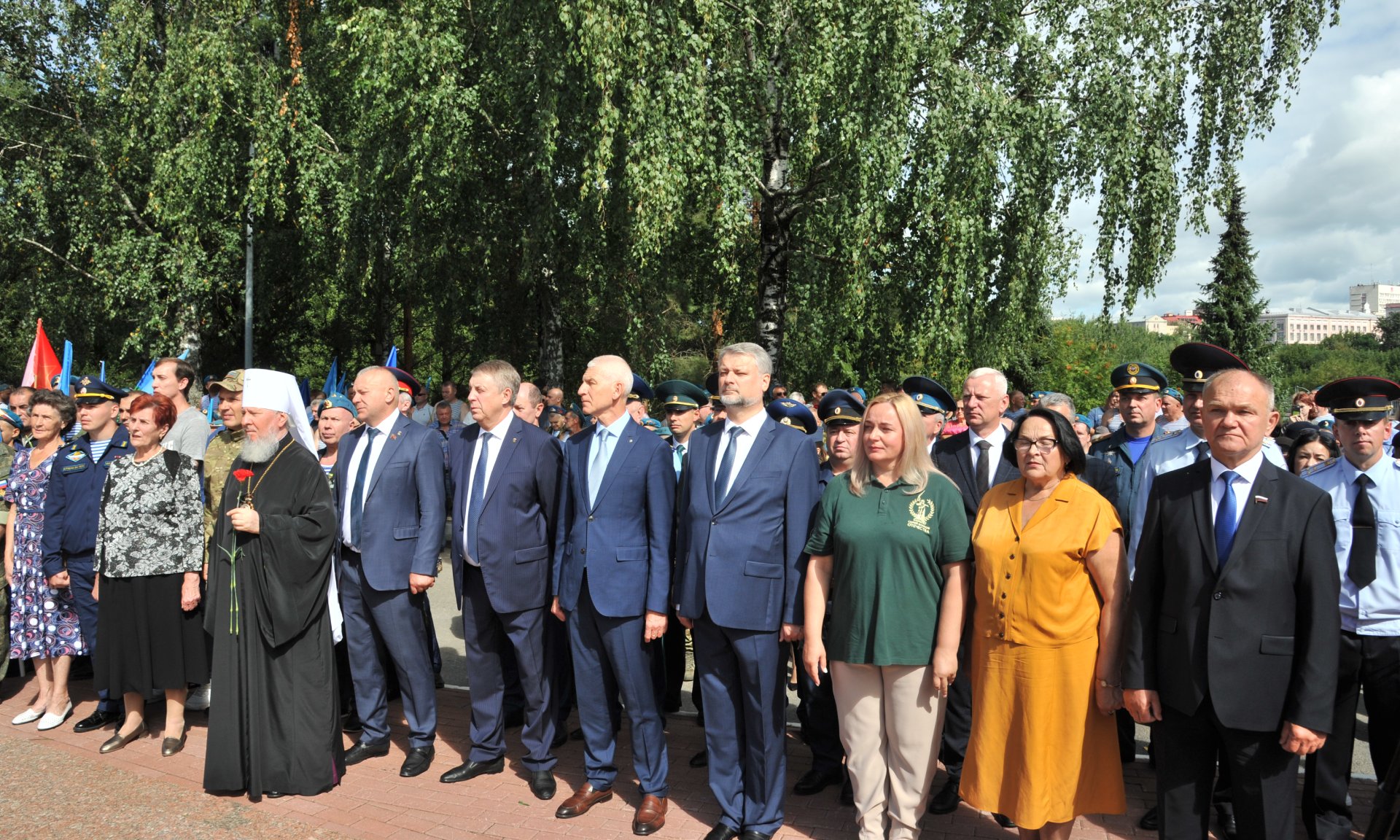Память воинов, отдавших свои жизни во имя свободы и независимости нашей страны, почтили Губернатор Брянской области Александр Богомаз, советник Председателя Правительства РФ Олег Матыцин, председатель Брянской областной Думы Валентин Суббот, главный федеральный инспектор по Брянской области Андрей Дьячук, Митрополит Брянский и Севский Александр, депутат Государственной Думы Федерального Собрания Российской Федерации Николай Щеглов, Герой Российской Федерации Андрей Фроленков, председатель Союза десантников Брянщины Михаил Амелин, матери погибших героев-защитников Отечества Лидия Филипповна Ермакова, Галина Георгиевна Василёва, Людмила Фёдоровна Журавлева и Марина Николаевна Седнева, руководители судебных органов Брянской области, правоохранительных органов и силовых структур Брянской области, заместители Губернатора Брянской области, руководители города Брянска, руководители и члены общественных организаций, ветераны Вооружённых сил, участники специальной военной операции, члены семей погибших защитников Отечества, десантники, члены общественных организаций, военно-патриотических клубов.