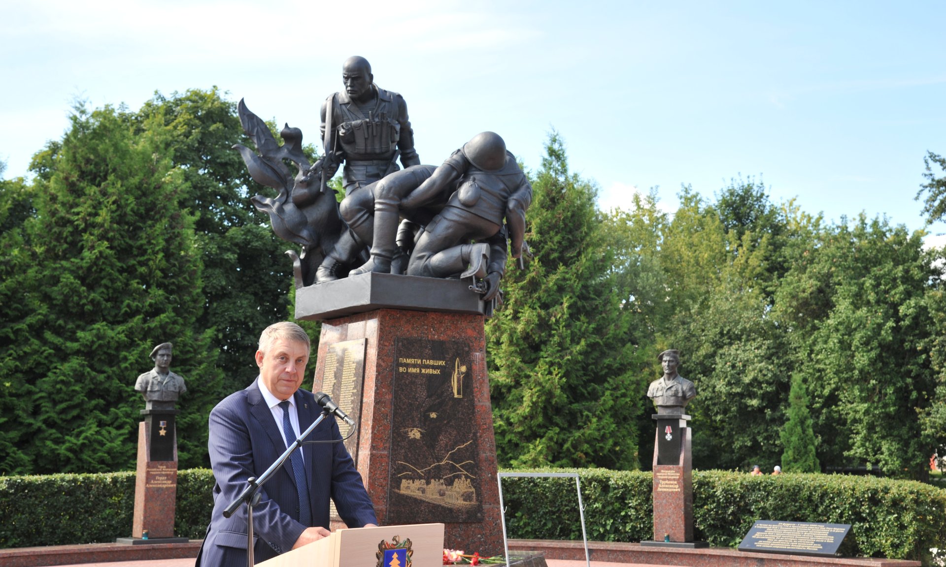 Сегодня здесь присутствуют родные и близкие тех, кто не вернулся из своего последнего боя. Низкий поклон вам от всех нас, от всего десантного братства. Мы всегда будем помнить о наших земляках, которые отдали самое дорогое — свою жизнь — за нашу страну. Я хочу сказать слова огромной благодарности матерям воинов-десантников. Вы воспитали настоящих сыновей, настоящих патриотов, и ваши сыновья, вы сами являетесь примером для нашего подрастающего поколения! Мы будем воспитывать подрастающее поколение на этих ярких примерах служения своему народу и своей стране. Правительство Брянской области всегда поддерживало вас и будет оказывать всю необходимую помощь семьям героев. Увековечивать память об их подвигах — это наш священный долг.