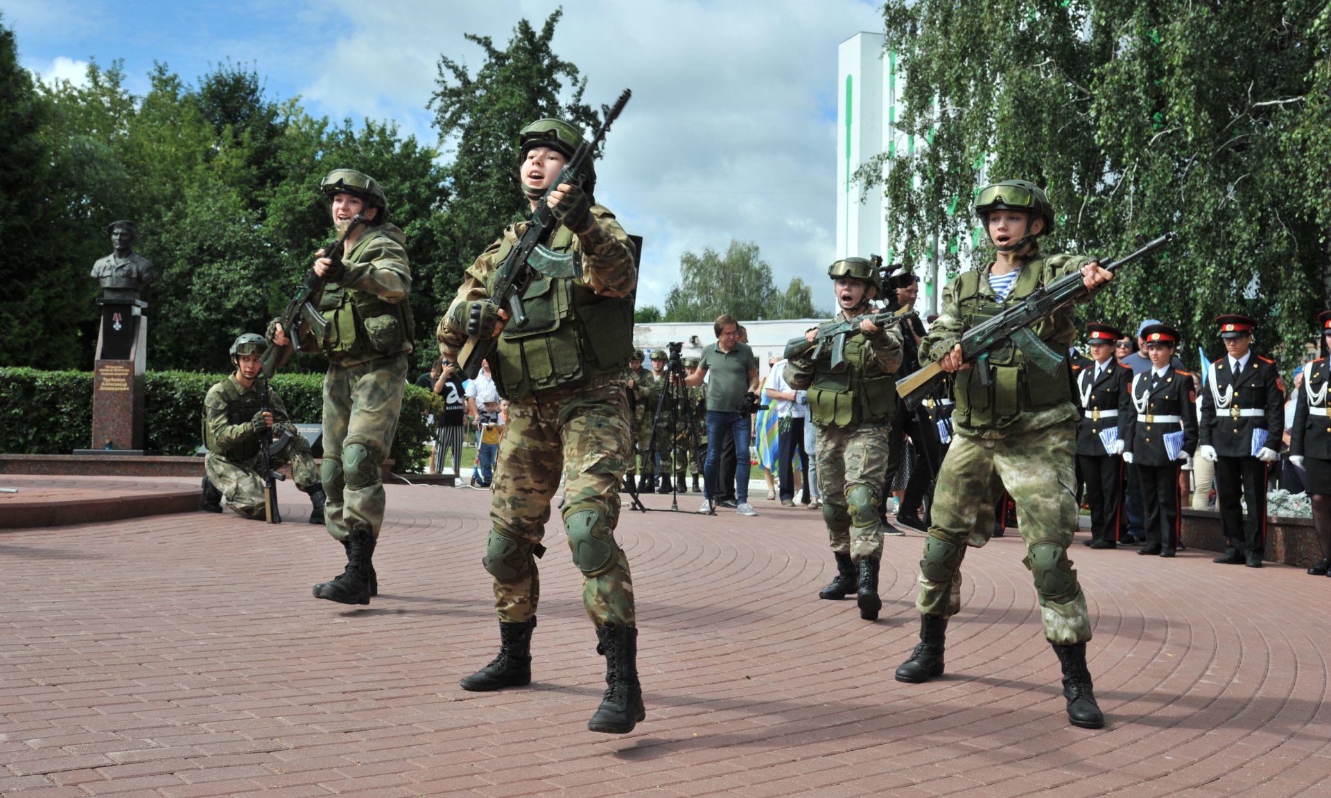 Курсанты десантного профиля военно-спортивного клуба «Патриот» провели показательные выступления. В память о воинах-десантниках, не вернувшихся с полей сражений, состоялось возложение цветов к бюстам героев-десантников и к памятнику «Круговая оборона».