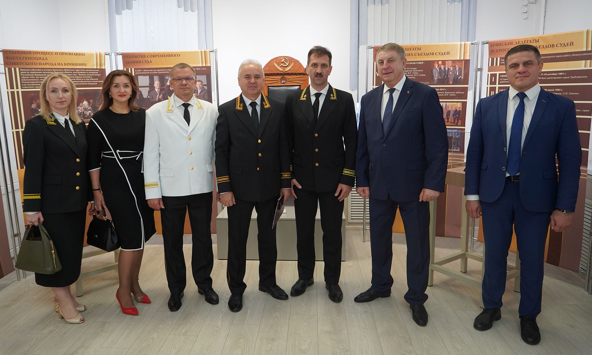 Перед началом была организована выставка, посвященная этой знаменательной дате. Ее посетители увидели результат совместного труда Брянского краеведческого музея и музея Брянского областного суда. Цель выставки — показать судебную власть через артефакты, дошедшие до нас, архивные документы, исторические фотографии. И хотя Брянскому областному суду исполнилось 80 лет, временной охват экспозиции гораздо обширней — от 19 века и до наших дней.