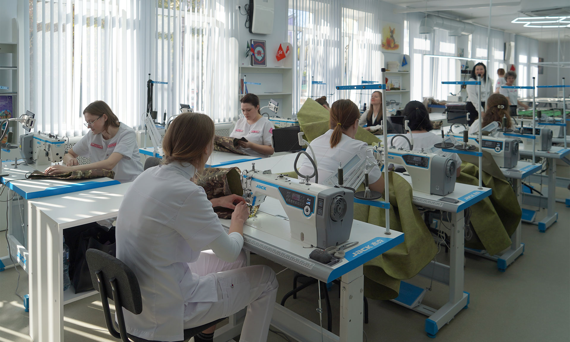 Предприятие создано в 2023 году, оно выросло из швейного цеха, в котором работали 10 сотрудников. В настоящее время здесь трудятся более 150 человек. Директор фабрики Сергей Халин провел для гостей экскурсию по цехам, показал, как организовано производство.