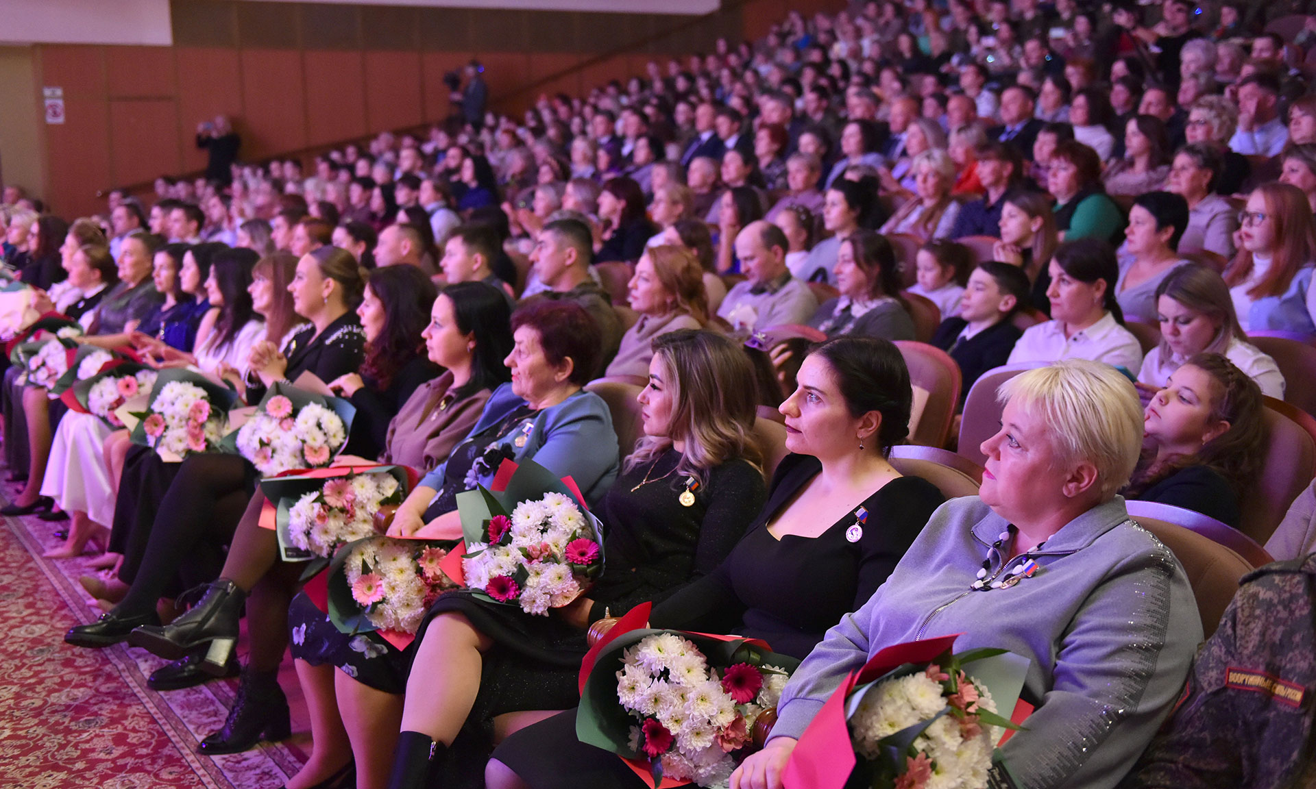 Наше особое внимание сегодня — мамам защитников Отечества. Матери российских солдат, каждая на своем примере, показывают силу русской женщины, то, насколько важно сохранять стойкость и мужество, честно трудиться и быть надежным тылом для своих сыновей. Спасибо вам за воспитание истинных патриотов нашей Великой страны!