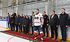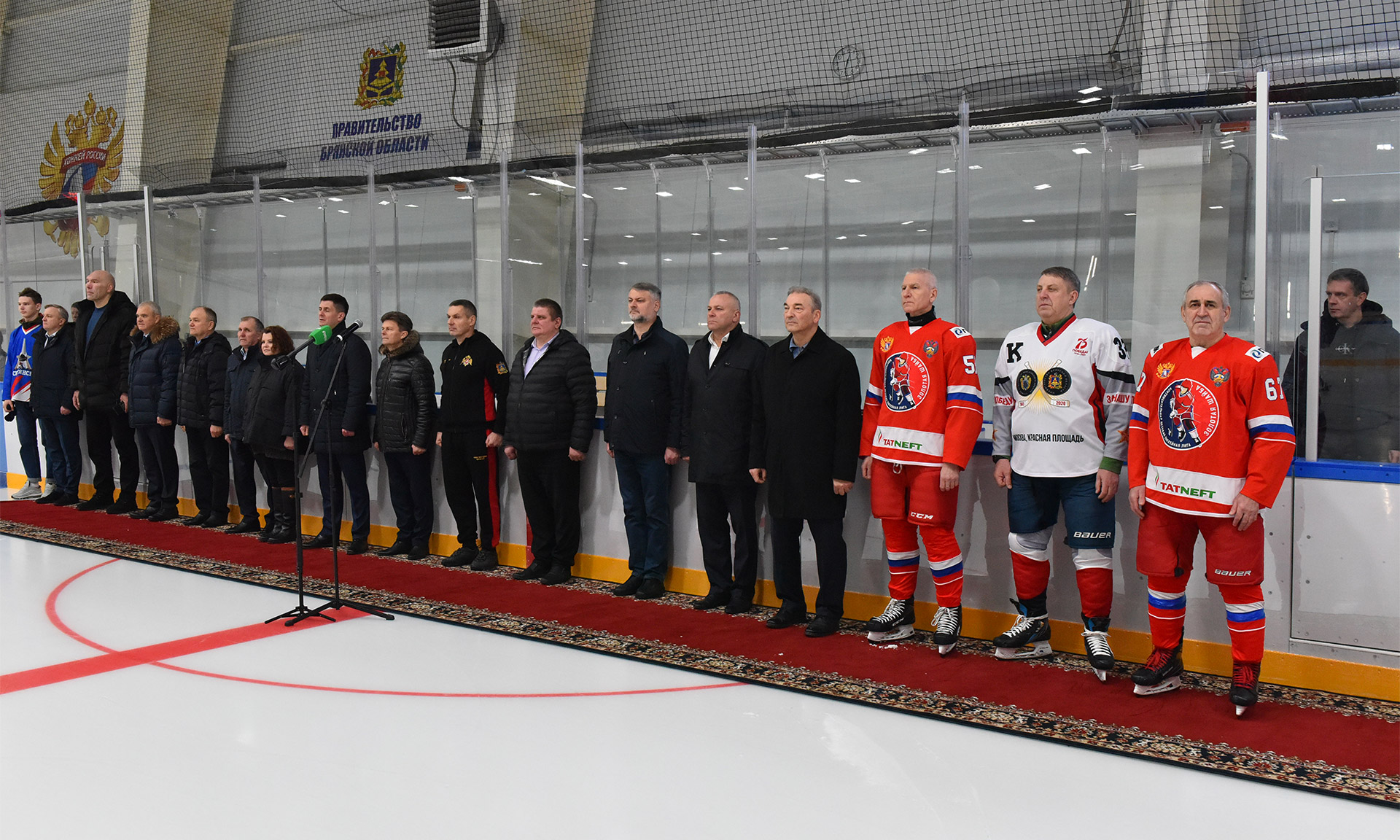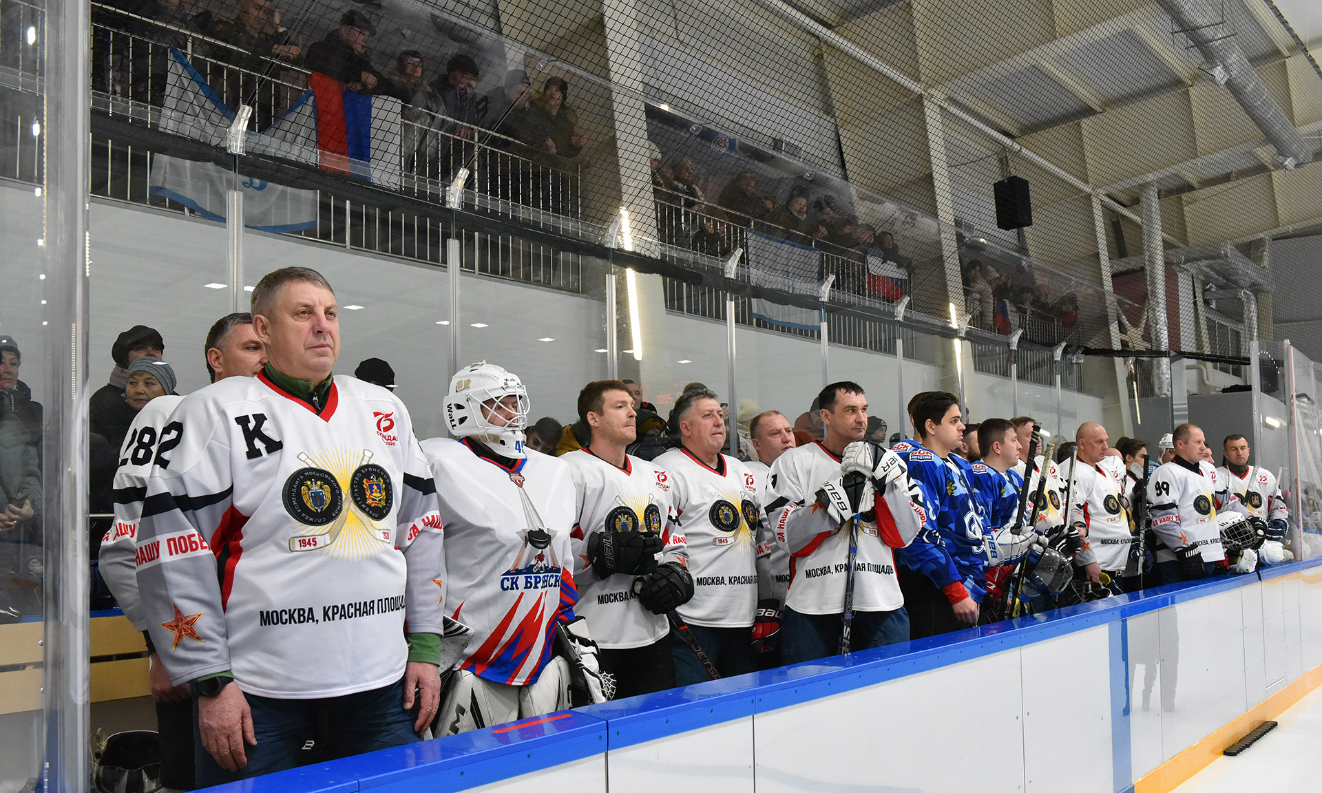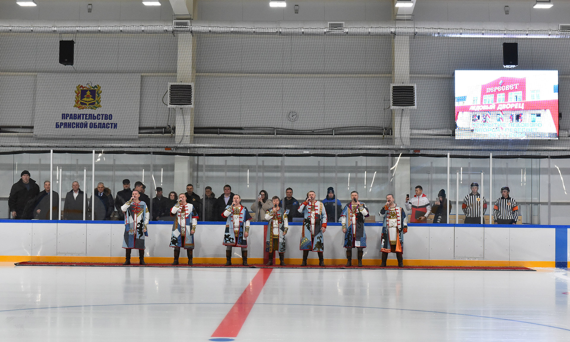 Под звуки Гимна Российской Федерации и Брянской области команды поприветствовали друг друга. Почетное право провести вбрасывание шайбы было предоставлено прославленному хоккеисту Владиславу Третьяку.