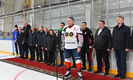 — Уважаемый Александр Васильевич, уважаемые почётные гости, дорогие болельщики, любители хоккея, хоккеисты!
