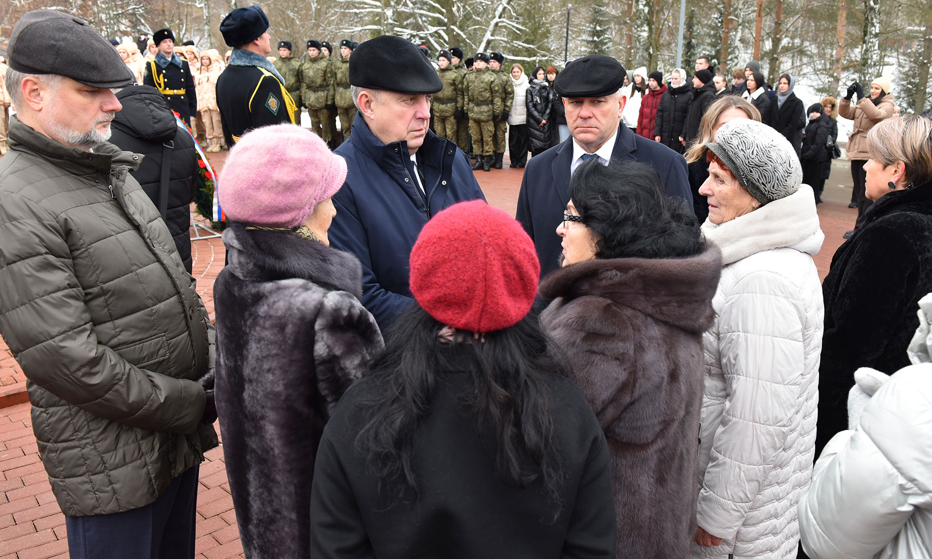 В церемонии возложения цветов к бюстам Героев Российской Федерации Олега Ермакова, Сергея Василева, Алексея Рассказы, Александра Гердта и к бюсту удостоенного ордена Мужества Александра Трубенка приняли участие Губернатор Александр Богомаз, мама Героя России Сергея Василёва Галина Георгиевна Василёва, мама Героя России Олега Ермакова Лидия Филипповна Ермакова, мама кавалера ордена Кутузова Федора Журавлева Людмила Федоровна Журавлева, мама награжденного Орденом Мужества Никиты Самойлова Наталья Анатольевна Самойлова.