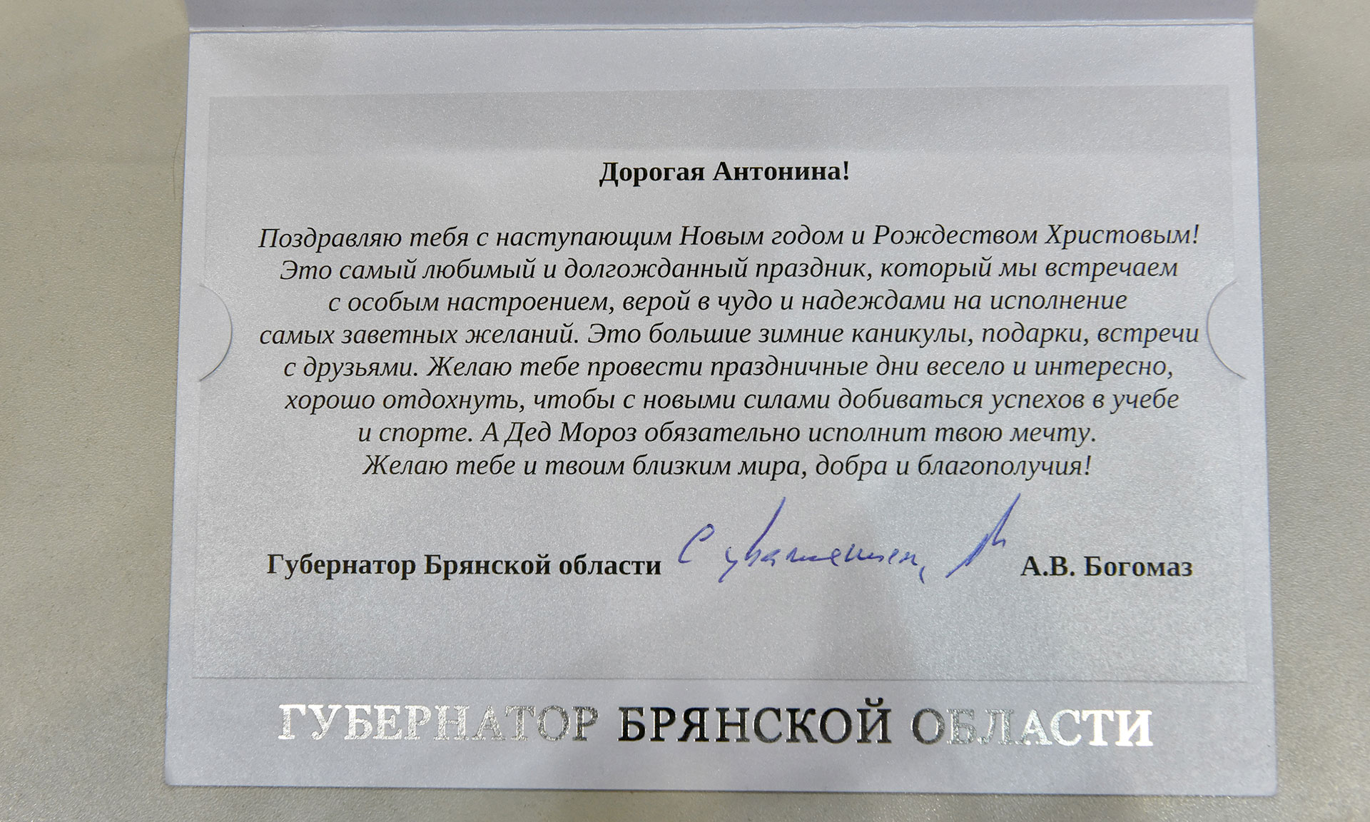 20 декабря сбылась мечта Тони Василевской из Новозыбкова. 10 декабря во Дворце единоборств имени Артема Осипенко был дан старт Всероссийской акции Российского движения детей и молодежи «Движение первых» «Елка желаний» в Брянской области, в которой принял участие Губернатор Александр Богомаз.