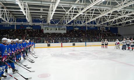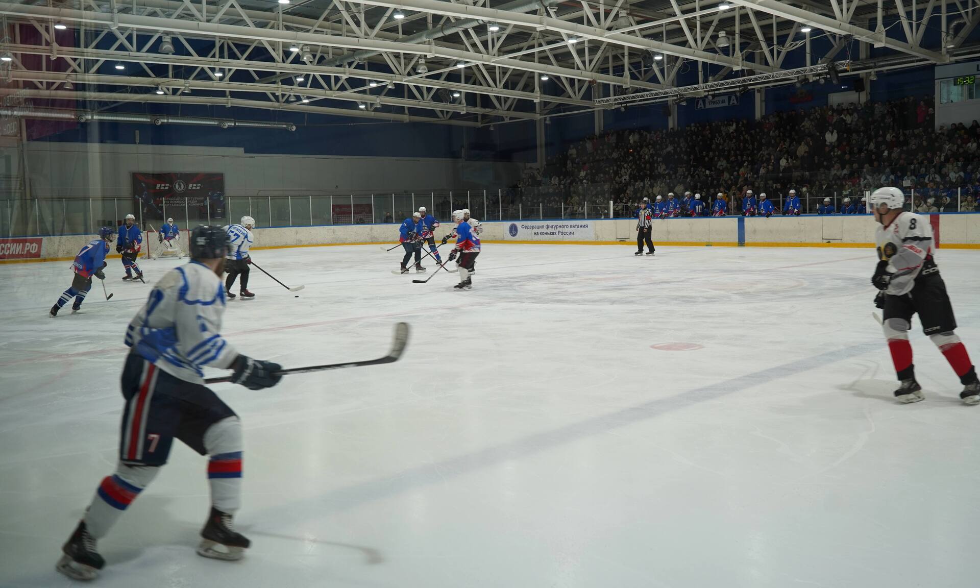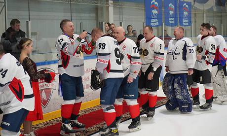 — Добрый день, дорогие друзья! Я рад вас приветствовать в этом замечательном спортивном комплексе. У нас стало хорошей доброй традицией в преддверии Дня российского студенчества собираться здесь, в ледовом дворце, и проводить товарищеский матч между молодежью и старшим поколением. Этот год не стал исключением.