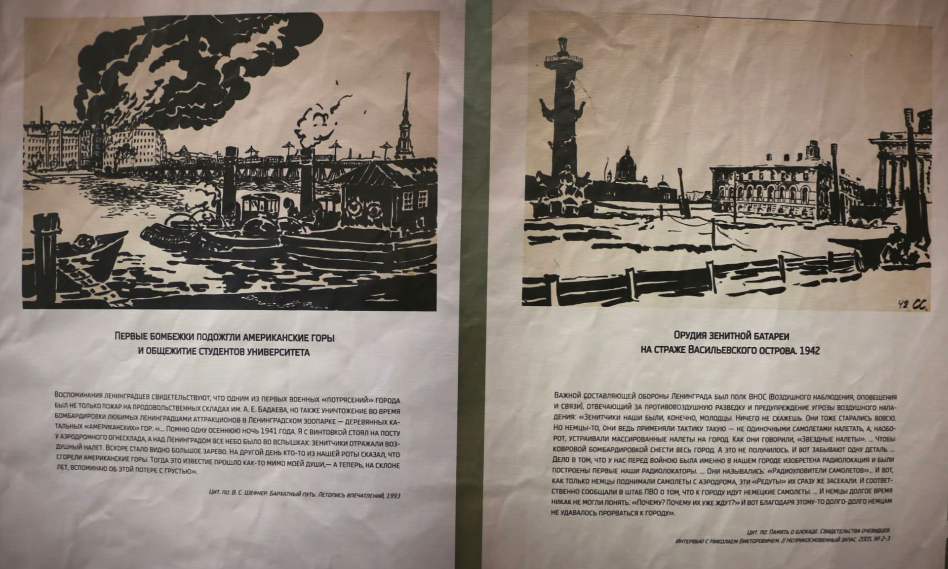 — Была хорошая погода, светило солнце, на улице играли дети. И вдруг начался обстрел Ленинграда. Это было 3 сентября, а через несколько дней прошла бомбёжка, и в это время Бабаевские склады были разбиты. Люди ходили на то место, где были склады, собирали землю, в ней было много сахара, приносили домой и пили чай.