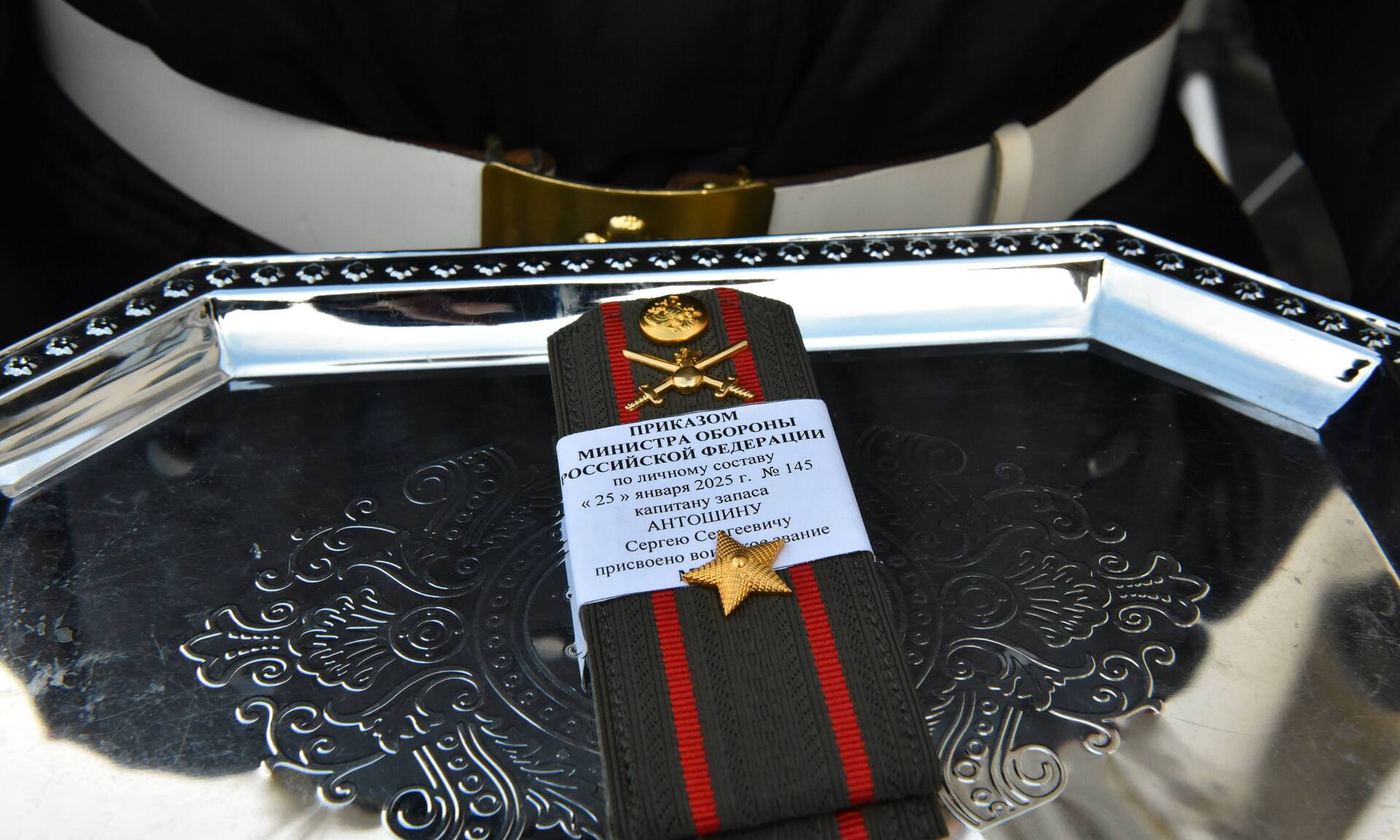 Начальник Главного штаба Сухопутных войск генерал-полковник Евгений Валерьевич Никифоров довел приказ Министра обороны Российской Федерации по личному составу о присвоении капитану запаса Сергею Сергеевичу Антошину воинского звания «майор». Поздравляю и выражаю благодарность за четкое и грамотное руководство и все те мероприятия, которые ежедневно проводятся вверенным подразделением!