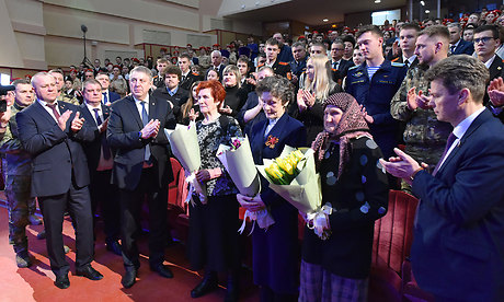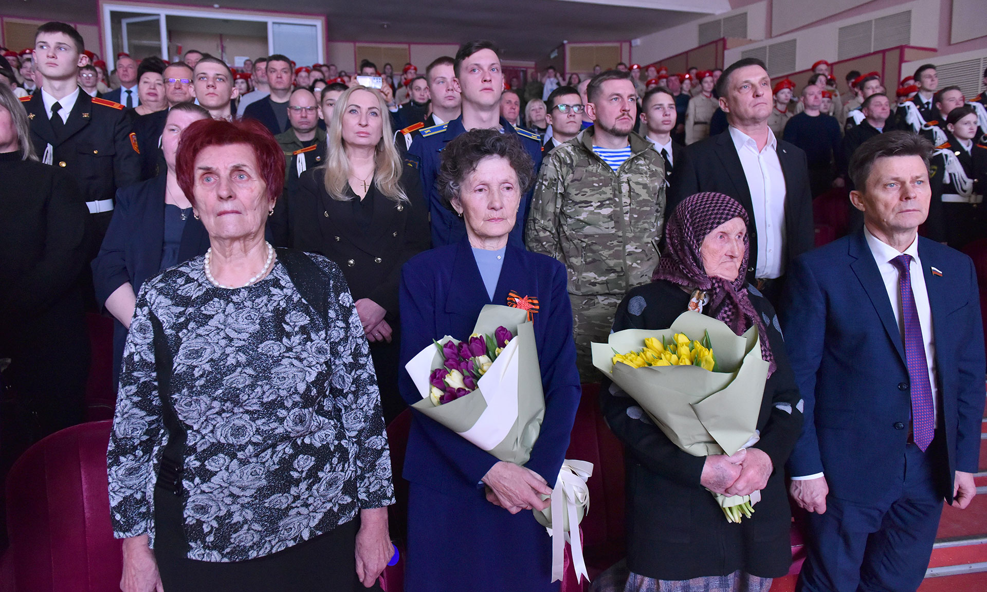 В числе гостей — матери и члены семей бойцов, погибших при выполнении воинского долга, ветераны, военнослужащие, курсанты и юнармейцы.