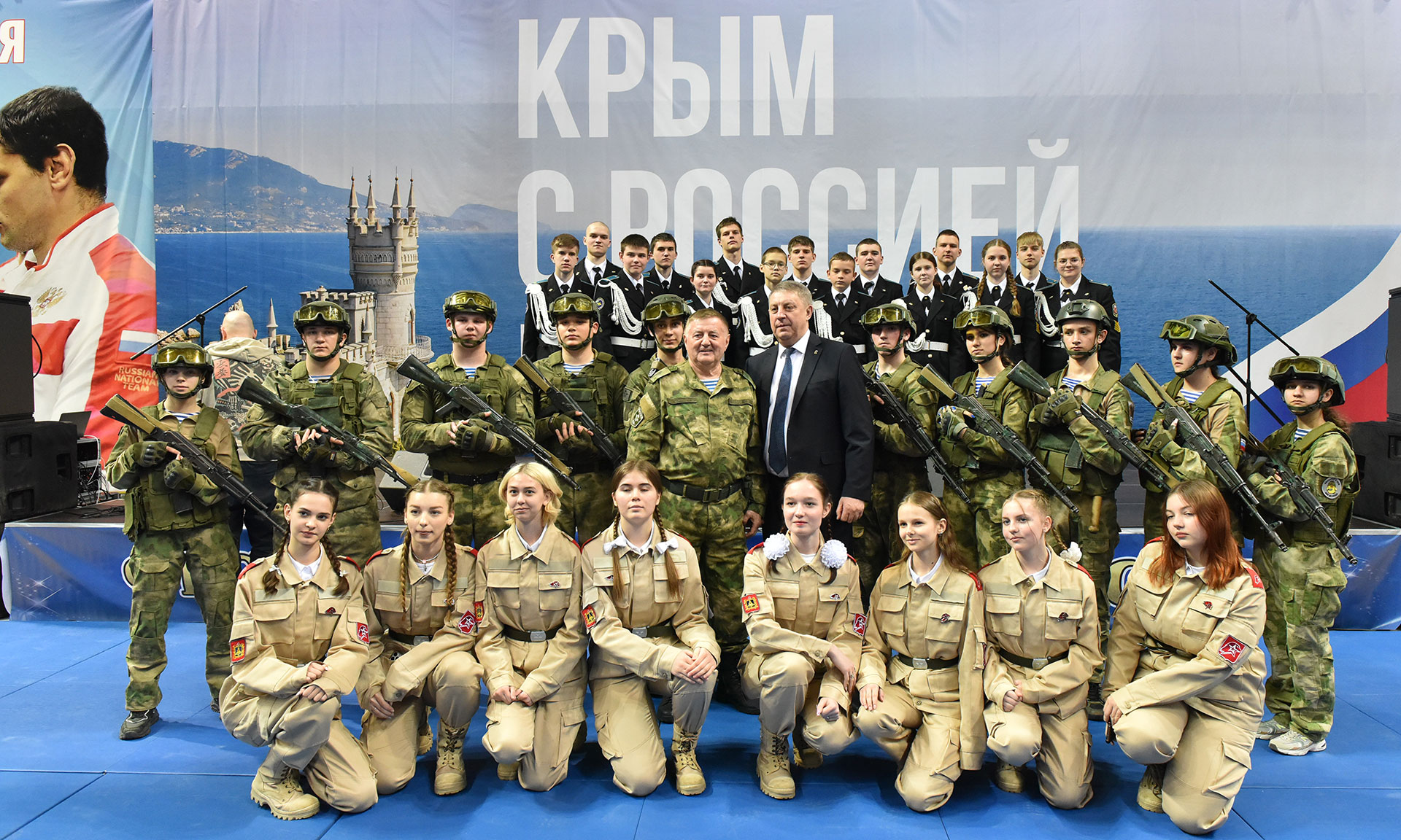 Скоро уже будет три года, как в состав Российской Федерации вошли и исконно русские территории Донбасса. Сегодня здесь присутствуют военнослужащие, наши герои, которые принимали участие в специальной военной операции. Огромное спасибо вам, и всем, кто находится сегодня на линии фронта, за то, что отстаиваете нашу русскую землю, независимость, наши исторические ценности. «Крымская весна» стала началом добрых перемен для всех, кто любит нашу страну и верит в правду и справедливость.