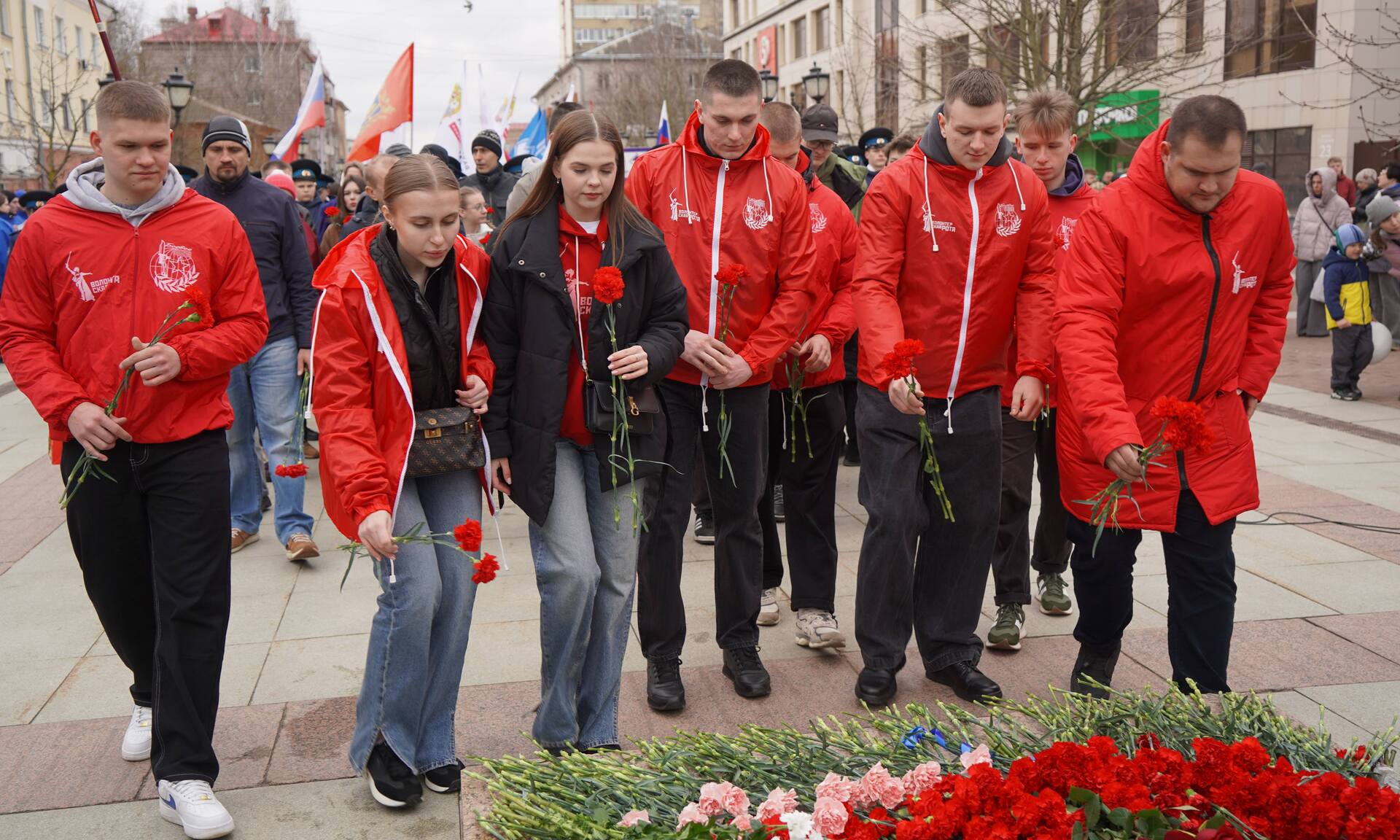 В честь Дня космонавтики и 64-й годовщины первого полета человека в космос участники мероприятия возложили цветы к памятнику первому покорителю космоса, Герою Советского Союза Юрию Алексеевичу Гагарину.