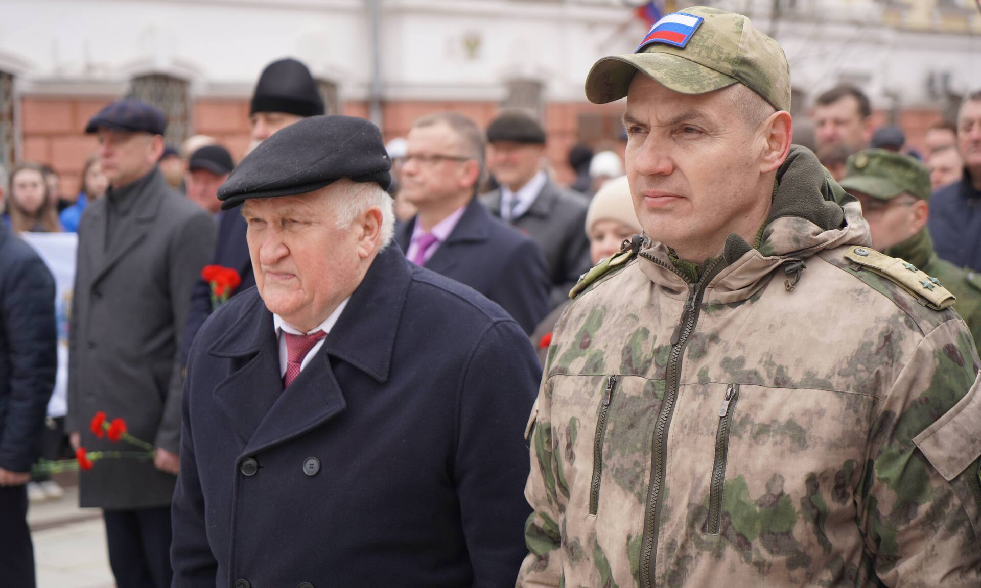 В церемонии приняли участие Губернатор Брянской области Александр Богомаз, Герой Советского Союза Виктор Афанасьев, главный федеральный инспектор по Брянской области Андрей Дьячук, Герои Российской Федерации Александр Постоялко и Андрей Фроленков, депутат Государственной Думы Федерального Собрания Российской Федерации Николай Щеглов, участник СВО, участник президентской кадровой программы «Время героев», кавалер трех орденов Мужества, подполковник Евгений Владимирович Вылцан, председатель Брянской областной общественной организации общества ветеранов авиации имени дважды Героя Советского Союза П. М. Камозина Владимир Зимин, руководители судебных органов Брянской области, прокуратуры Брянской области, территориальных органов федеральных органов государственной власти в Брянской области, заместители Губернатора Брянской области, руководители города Брянска, депутаты Брянской областной Думы и Брянского городского Совета народных депутатов, руководители и члены общественных организаций, фондов Брянской области, курсанты, студенты, члены военно-патриотических клубов Брянской области.