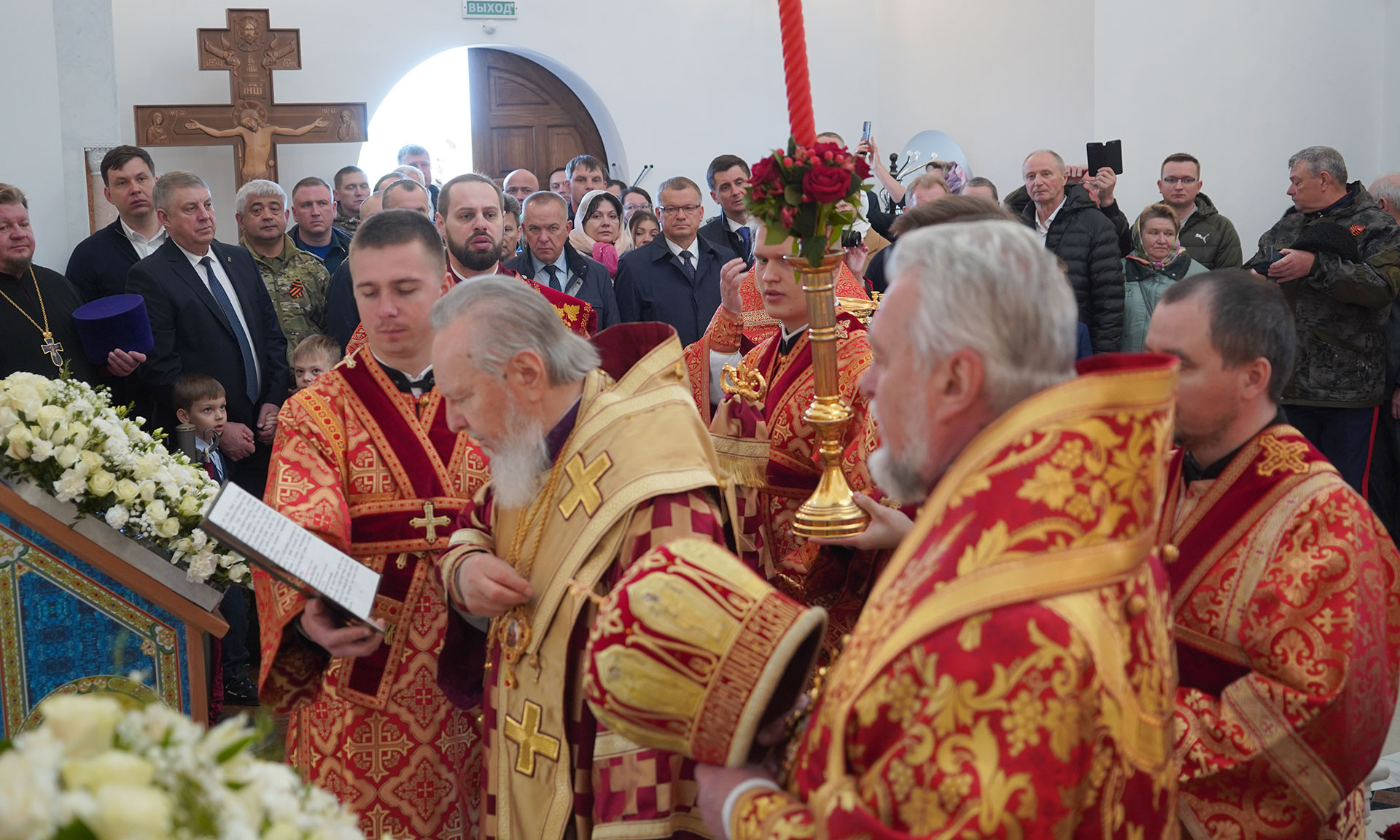 — Уважаемый Александр Васильевич, уважаемая Ольга Александровна, уважаемые Роман Александрович и Михаил Александрович, Ваше Преосвященство, дорогой Владыка Владимир, дорогие отцы, братья и сестры! Христос Воскресе!