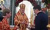 — Ваше Высокопреосвященство, дорогой Владыка Александр! Ваше Преосвященство, дорогой Владыка Владимир! Дорогие гости, уважаемые земляки! Я поздравляю вас всех с этим праздником, освящением храма!