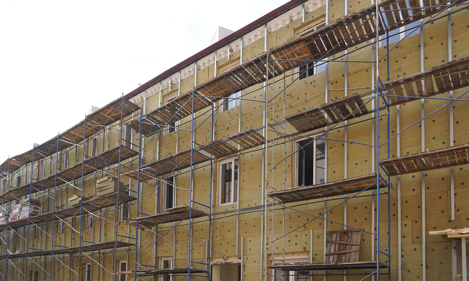 В общежитии уже вышли на чистовую отделку второго и третьего этажа, утеплен фасад, уже видна геометрия комнат, сделана водосточная система кровли, на следующей неделе подрядчик завозит плитку, приступает к потолкам. В тренажерном зале работы тоже идут по графику. Все замечания, которые были, учтены.