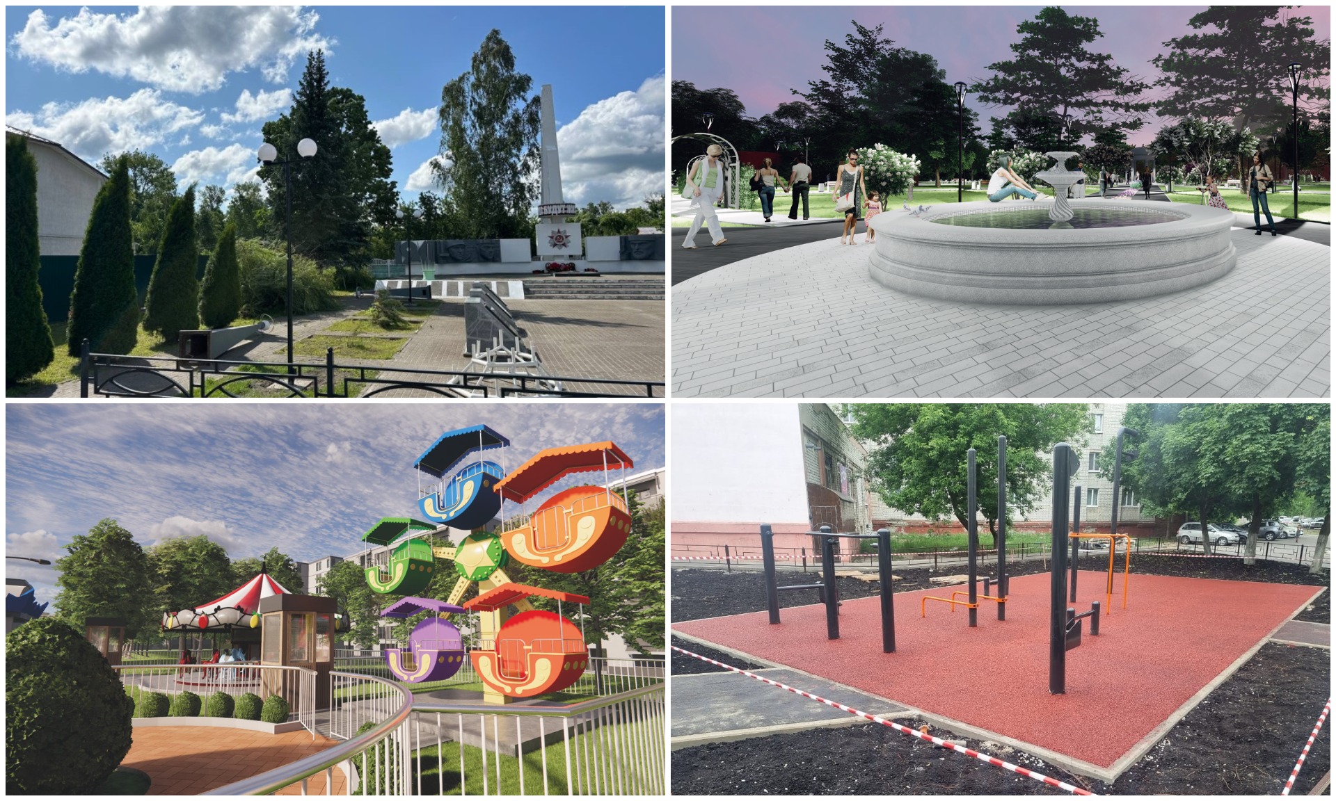 Это площадь Октябрьской революции и прилегающей территории в Советском районе Брянска, площадь в районе Центрального фонтана в Клинцах, сквер по ул. Красной в Новозыбкове, городской парк в Дятькове, территория, прилегающая к клубу им. 1 Мая в Унече (первый этап), часть Народной площади в п. Глинищево, сквер имени 348-й дивизии в Стародубе, монумент воинам-злынковчанам, погибшим в годы Великой Отечественной войны в Злынке.
