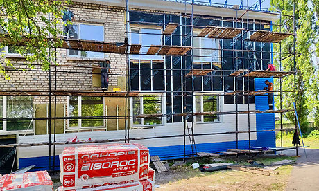 Инфекционная больница, которая не работала, это было разрушенное здание. Все, что здесь остается от прежнего здания,- это стены. Сейчас уже завершены работы по капитальному ремонту кровли над тремя зданиями: детских поликлиники и больницы, а также будущего инфекционного отделения. Также уже произведена замена оконных блоков и отделка откосов, продолжаются работы по монтажу вентилируемого фасада. В инфекционном отделении ведутся работы по заливке полов, приступили к монтажу перегородок.