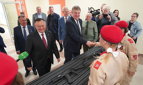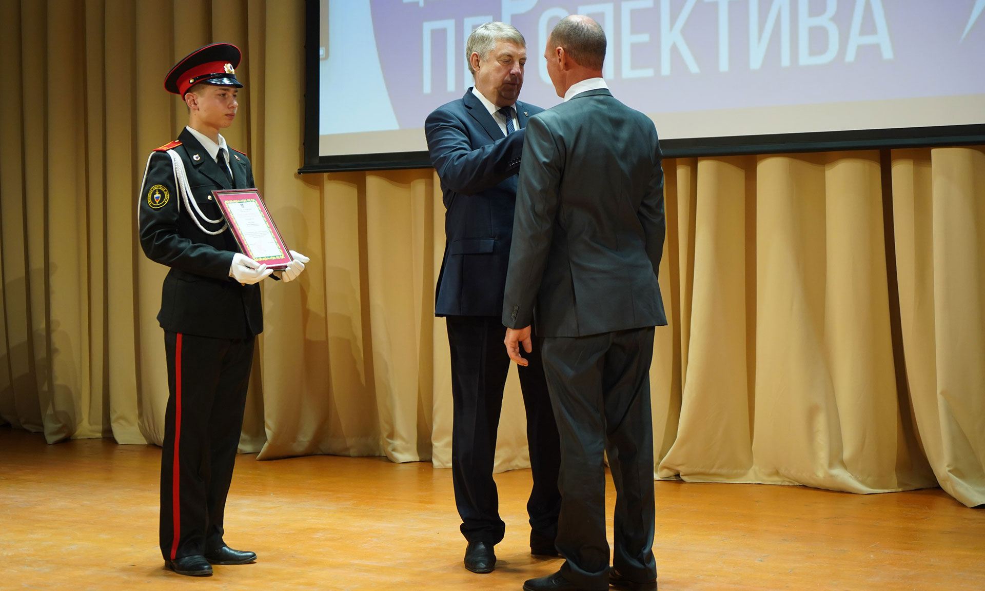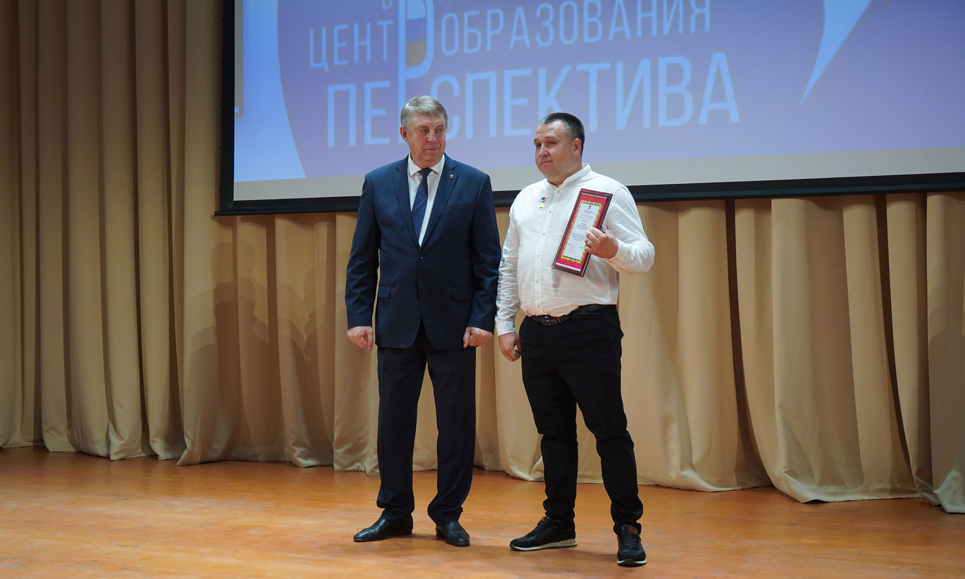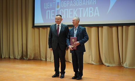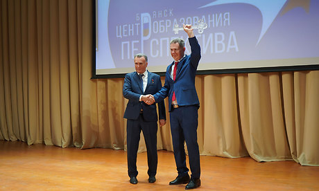 Я признателен застройщику, Михаилу Афанасьевичу Кабанову, кто построил уже четвертую школу в Брянске. Это действительно большой труд, он делает эту работу и никогда не подводил. Мы его тоже ценим, уважаем. Он у нас единственный в Брянской области Герой Труда!