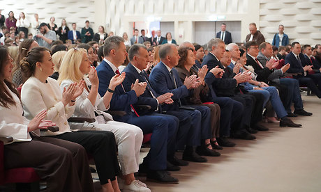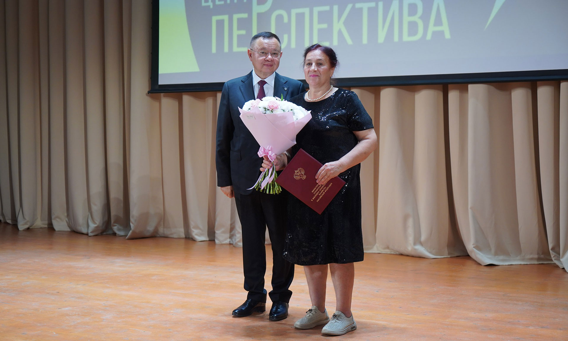 На торжественной церемонии открытия новой школы Министр строительства и ЖКХ РФ наградил работников строительства и жилищно-коммунального комплекса региона ведомственными наградами Минстроя России.