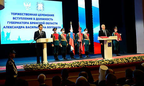 — Уважаемый Александр Васильевич! Уважаемые участники церемонии! Поздравляю Вас с официальным вступлением в должность губернатора Брянской области!