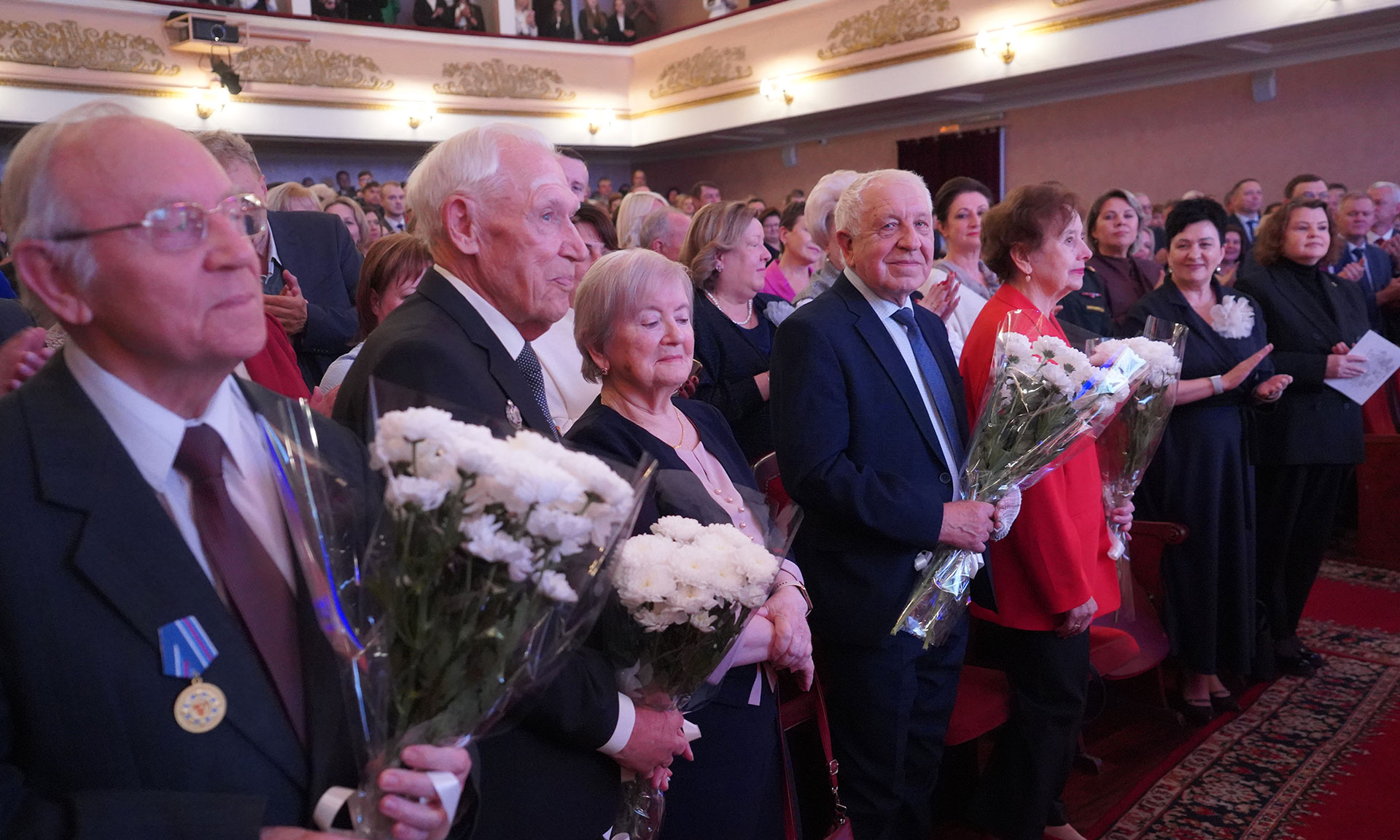 С особым чувством признательности и благодарности участники мероприятия приветствовали ветеранов педагогического труда, всех, кто причастен к делу образования и воспитания студенческой молодежи и, конечно же, студентов, выпускников университета разных лет.