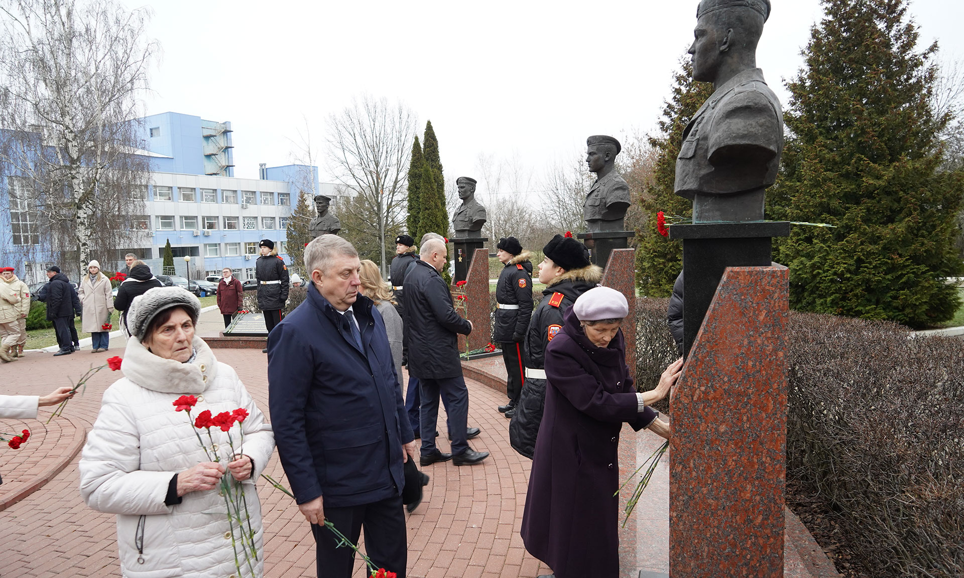 Цветы к бюстам Героев Российской Федерации Олега Ермакова, Сергея Василева, Алексея Рассказы, Александра Гердта, к бюсту удостоенного ордена Мужества Александра Трубенка, а также венок к памятнику «Круговая оборона» возложили Губернатор Александр Богомаз, мама Героя России Олега Ермакова Лидия Филипповна Ермакова, мама Героя России Сергея Василёва Галина Георгиевна Василёва, мама кавалера ордена Кутузова Федора Журавлева Людмила Федоровна Журавлева, мама кавалера ордена Мужества Дмитрия Седнева Марина Николаевна Седнева, председатель Брянской областной Думы Валентин Суббот и главный федеральный инспектор по Брянской области Андрей Дьячук. В мероприятии также приняли участие руководители судебных органов Брянской области, прокуратуры, правоохранительных органов и силовых структур Брянской области, заместители Губернатора Брянской области, руководители, города Брянска, председатели комитетов Брянской областной Думы, депутаты Брянского городского Совета народных депутатов, представители Брянской Епархии, общественных организаций, преподаватели и студенты высших образовательных организаций Брянской области, курсанты, кадеты, юнармейцы.