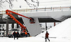 Для того чтобы не останавливать процесс, мостостроители соорудили так называемые тепляки — строительные шатры.